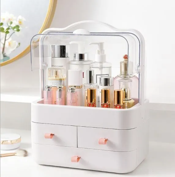 Keep your makeup essentials neatly arranged with this Cosmetic Drawer Storage Box. Designed with multiple compartments and drawers, it allows easy access to your skincare, beauty products, lipsticks, brushes, and even jewelry. The elegant design fits perfectly on your dressing table or bathroom counter. Made from high-quality plastic or acrylic, it’s easy to clean and long-lasting.