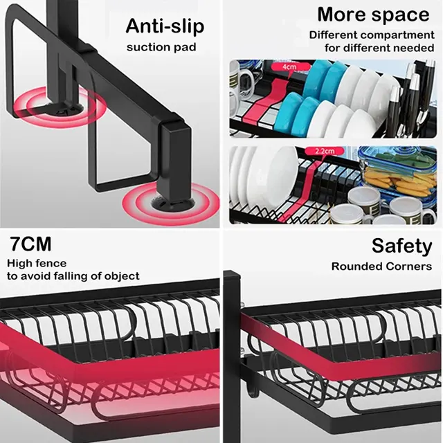 Double Tier Dish Drainer Rack Over Sink — Maximize Your Counter Space, Minimize Your Effort: Say goodbye to clutter and hello to hassle-free dish drying with a rack designed for small kitchens and big convenience!