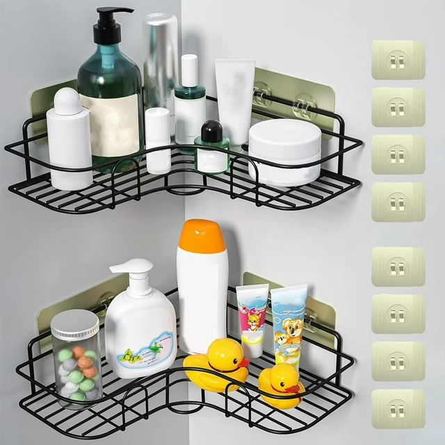 Stainless Steel Corner Shelf Organizer – Drill-Free & Wall-Mounted